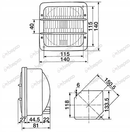передняя фара, фара 140x140 мм Landini, Massey Ferguson.