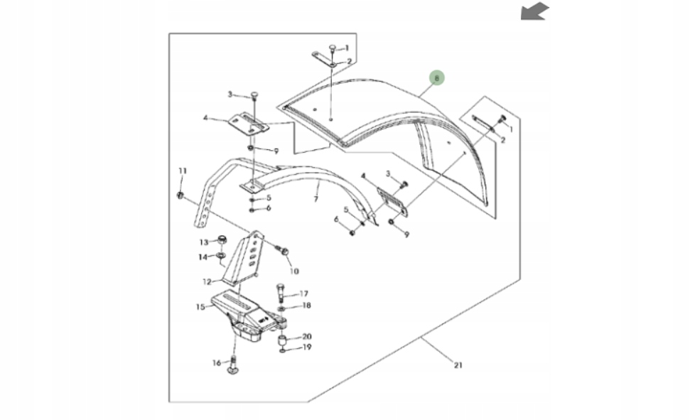 Fender JOHN DEERE AL180327 420mm поставляется в тракторах John Deere серии 5000 и 6000.п>