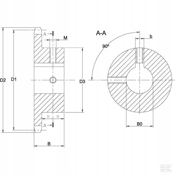 - клиновая канавка по DIN 6885 на центральной линии зубьев