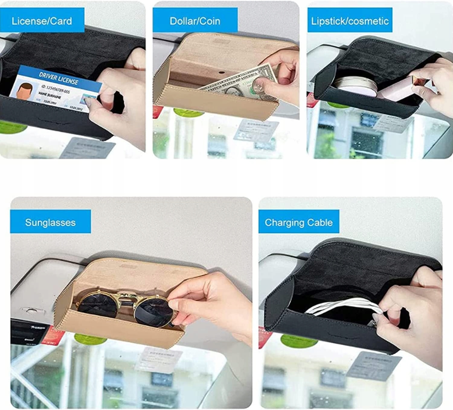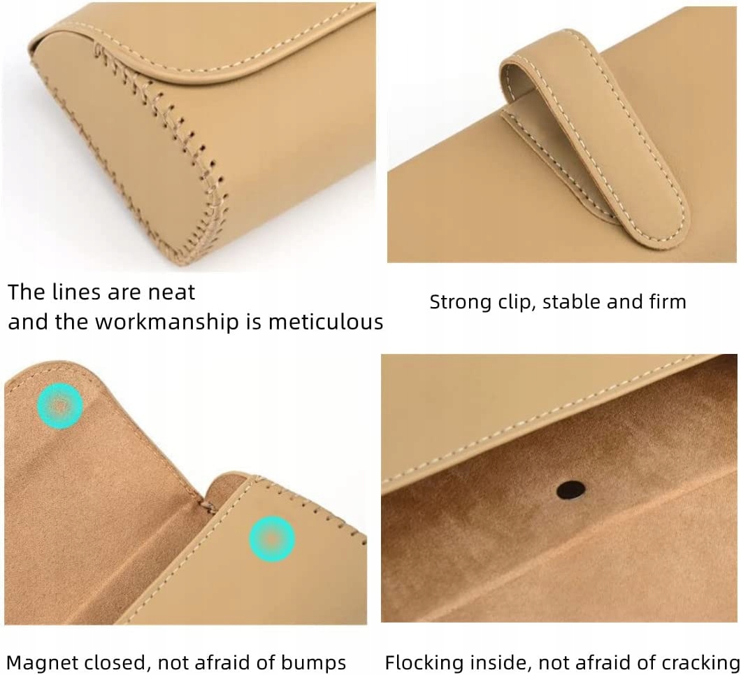 Гуманизированный дизайн, этот чехол для автомобильных солнцезащитных очков крепится к солнцезащитному козырьку вашего автомобиля, он не будет мешать обзору вождения, не повлияет на ваш взгляд в зеркало и не повлияет на функцию использования оригинального автомобиля. Материал чехла для автомобильных очков покрыт экологически чистой искусственной кожей, не имеет специфического запаха, роскошная роскошь. Утолщенная флокированная подкладка лучше защитит ваши очки и надежно закрепит солнцезащитные очки и другие мелкие предметы. Легко установить: просто прикрепите держатель автомобильных солнцезащитных очков к солнцезащитному козырьку. Он имеет двойную защелку, которая достаточно прочна, чтобы удерживаться и оставаться на месте. Зажим прямой и широкий, не оставляет следов на солнцезащитном козырьке. Его можно установить на задние сиденья, дверные солнцезащитные козырьки и другие места, где его можно закрепить. Многофункциональность. Эта коробка для солнцезащитных очков подходит для большинства легковых автомобилей, внедорожников и грузовиков, а также для большинства солнцезащитных очков. В нем можно хранить не только солнцезащитные очки, но и другие мелкие предметы, такие как карты, монеты, ключи и т. д. Отличный сервис. Можете ли вы сообщить нам, если возникнут какие-либо проблемы, вопросы или сомнения? Наша команда обслуживания клиентов готова помочь вам. Вы можете быть уверены, что купите нашу продукцию.