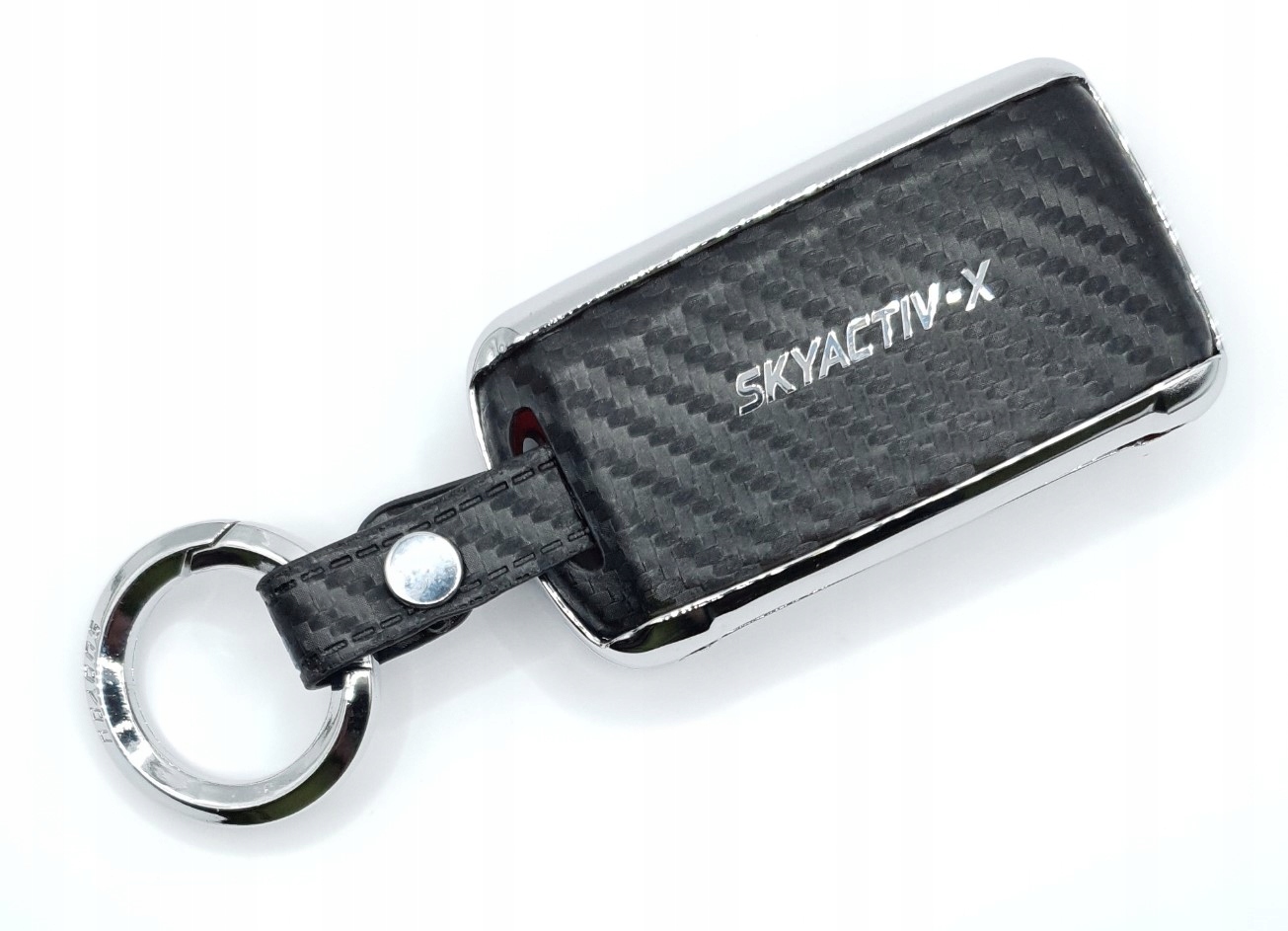 в ассортименте новый элегантный высококачественный металлический хромированный чехол с черными кожаными вставками, имитирующими углерод, для версии ключа SMART для моделей MAZDA 2/3/4-кнопки с карабином: