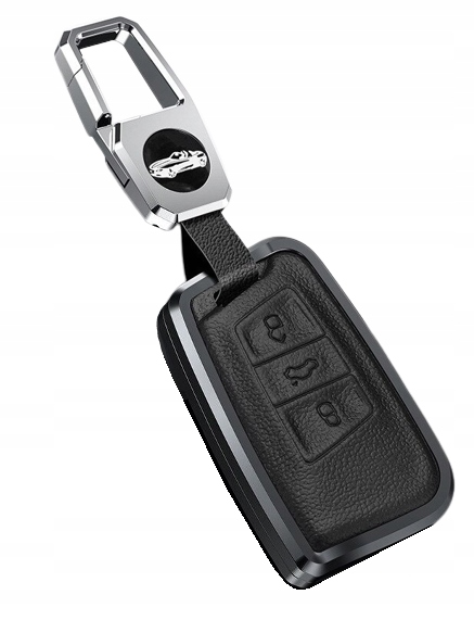 в ассортименте элегантные высококачественные новые алюминиевые чехлы с кожаными аксессуарами для версии ключа SMART (бесконтактный запуск автомобиля) для моделей VW, Skoda, Seat/Cupra в цвете czarnym:
