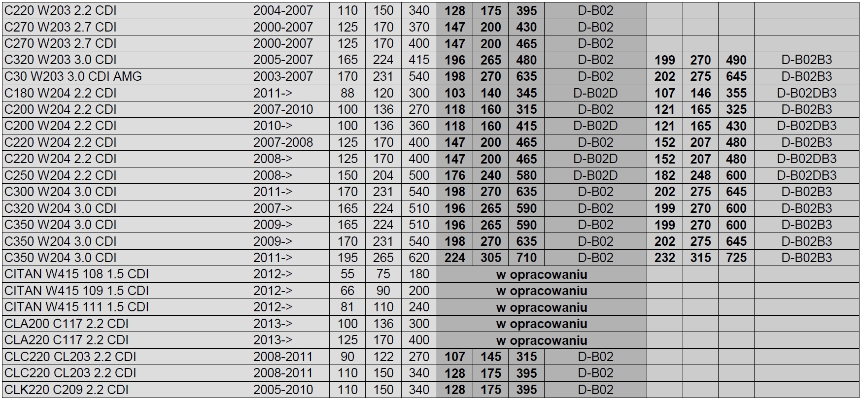 список автомобилей постоянно увеличивается, если вы не нашли свой автомобиль в таблице, мы укажем соответствующий аукцион на allegro.