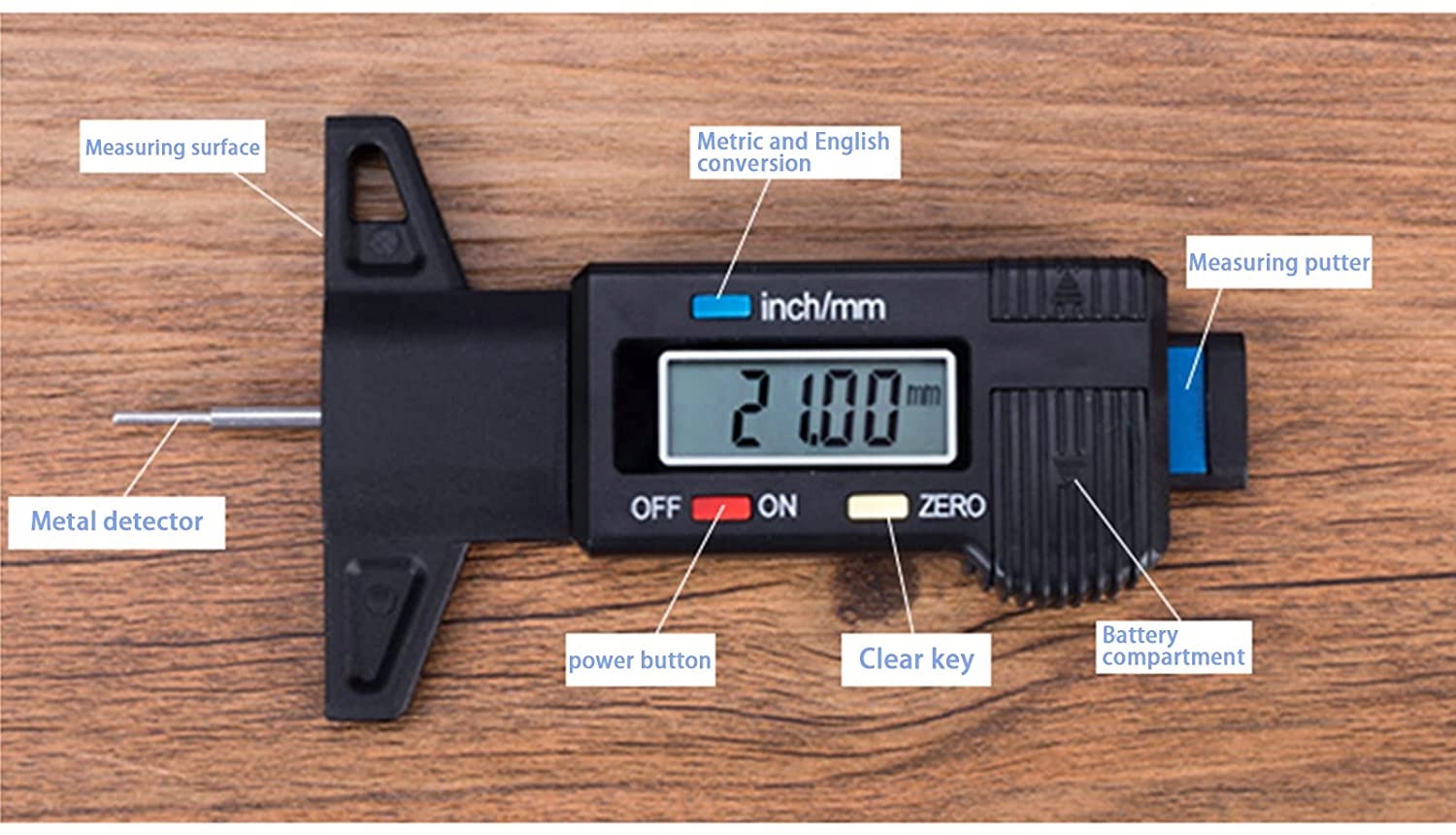 Цифровой измеритель глубины резьбы шин весит всего 50 Г и достаточно легкий, чтобы его можно было носить и использовать.