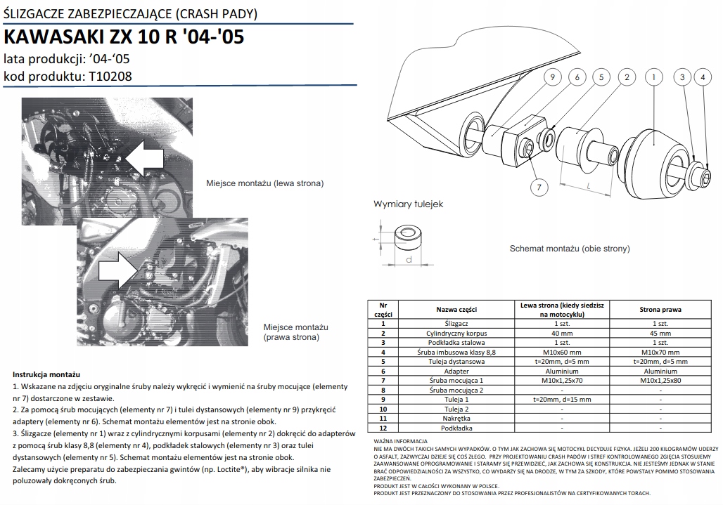 набор краш-колодок имеет двухзонную конструкцию-внешняя зона поглощает энергию удара и изгибается в строго определенной точке. Внутренняя часть-это правильное крепление к оригинальным компонентам мотоцикла-раме или блоку двигателя. Прочность болтов и их резьбы подобрана таким образом, чтобы не вызвать обрыв резьбы или изгиб рамы мотоцикла при ударе. Болты во внутренней зоне имеют гораздо более высокий класс прочности (12,9), чем болты во внешней части (8,8). Таким образом, Реннер устранил основной недостаток других crash Pad, доступных на рынке.п>