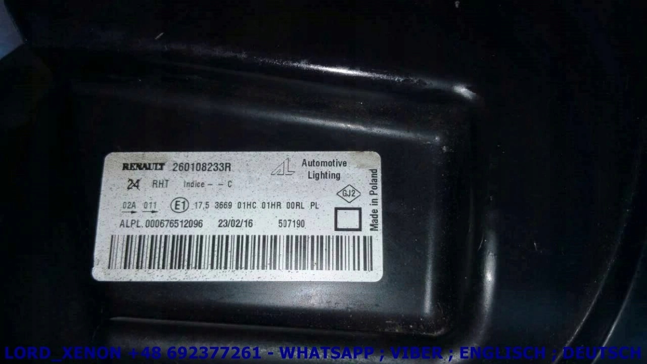 DACIA DUSTER I 10- 13 ФОНАРЬ ПРАВЫЙ SCHEINWERFER RECHTS 260108233R 260100067R