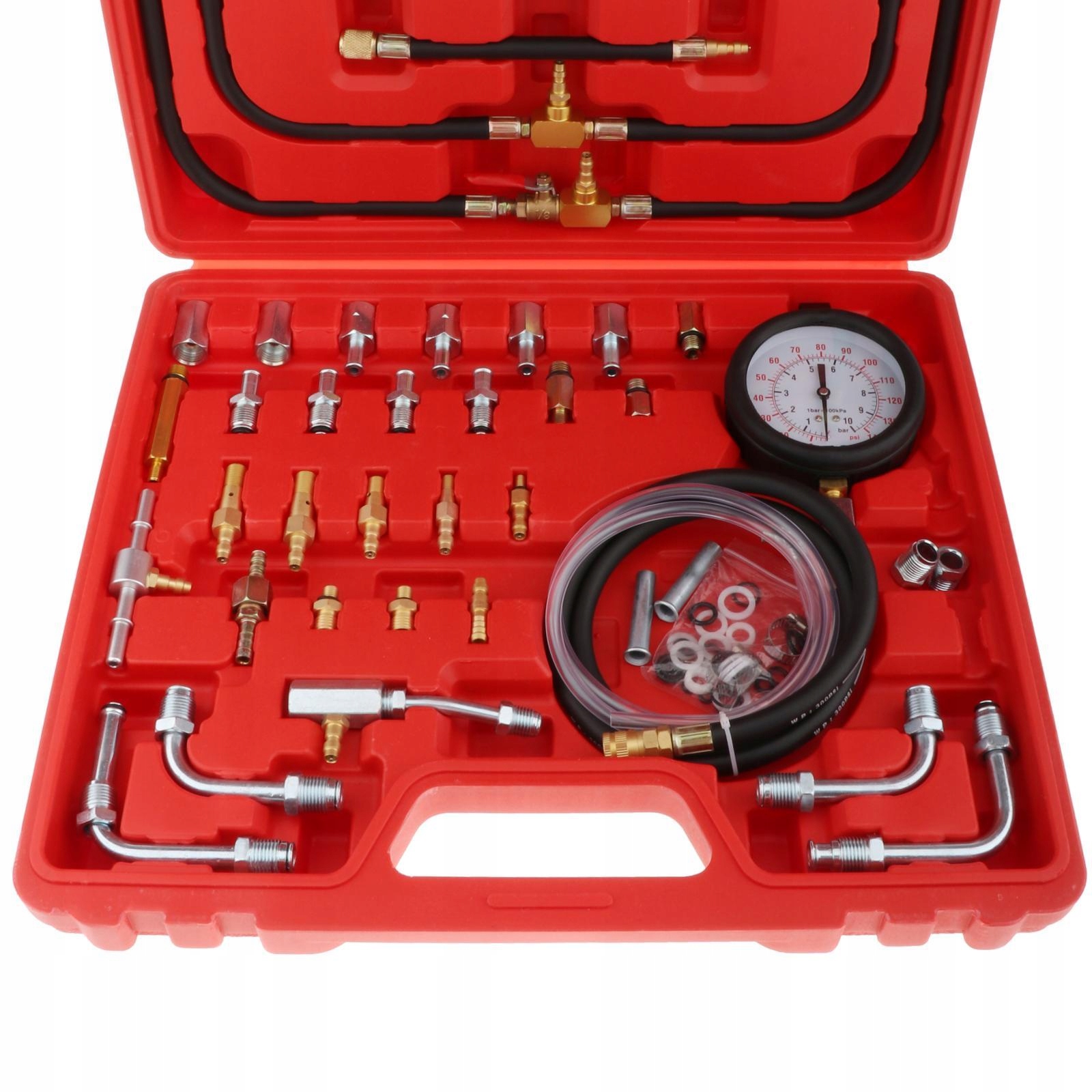 46pcs универсальный тестовый комплект для тестера давления впрыска топлива, оснащенный адаптерами, шлангами и фитингами, подходит для большинства автомобилей и грузовиков и систем впрыска топлива