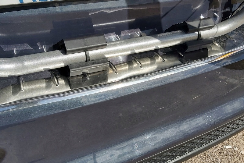 благодаря креплениям на задней двери у нас есть возможность ездить быстрее, потому что сопротивление воздуха здесь меньше, чем при транспортировке велосипедов на крыше. Автомобиль также менее чувствителен к боковым порывам воздуха.мы должны только помнить, что задняя часть автомобиля длиннее, что имеет значение при парковке и движении задним ходом, и что ширина автомобиля больше. велосипеды могут слегка выступать из стороны в сторону. Об этом нужно помнить во время обгона (особенно велосипедистов и пешеходов) или при парковке между другими автомобилями. поскольку крыша автомобиля свободна, мы можем установить на нее, например, дополнительный багажный ящик.