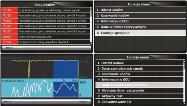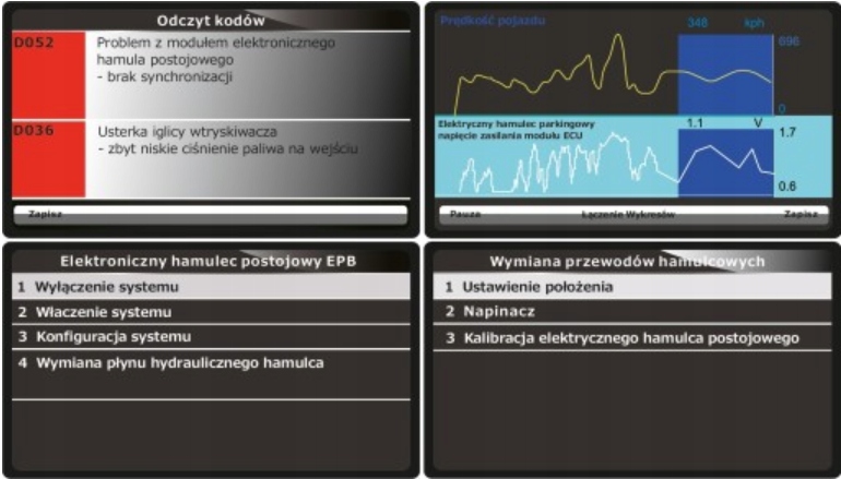 Имеет производное меню сервисных функций: сброс сервисных/проверок масла; электронная работа стояночного тормоза, аккумулятор, форсунки, DPF