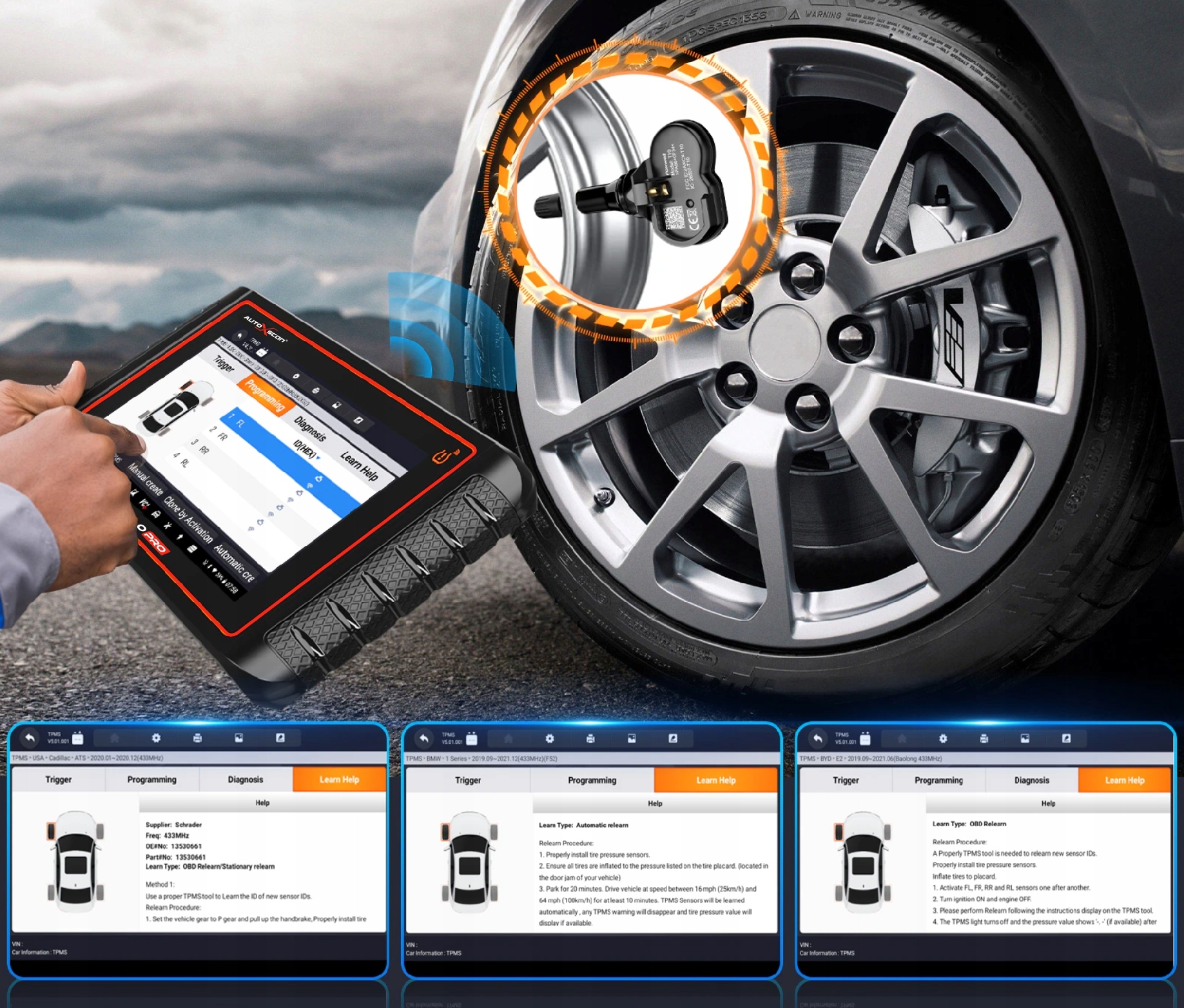 ДИАГНОСТИЧЕСКИЙ ТЕСТЕР-ПРОГРАММИСТОР ДАТЧИКОВ ДАВЛЕНИЯ TPMS AUTOXSCAN RS960