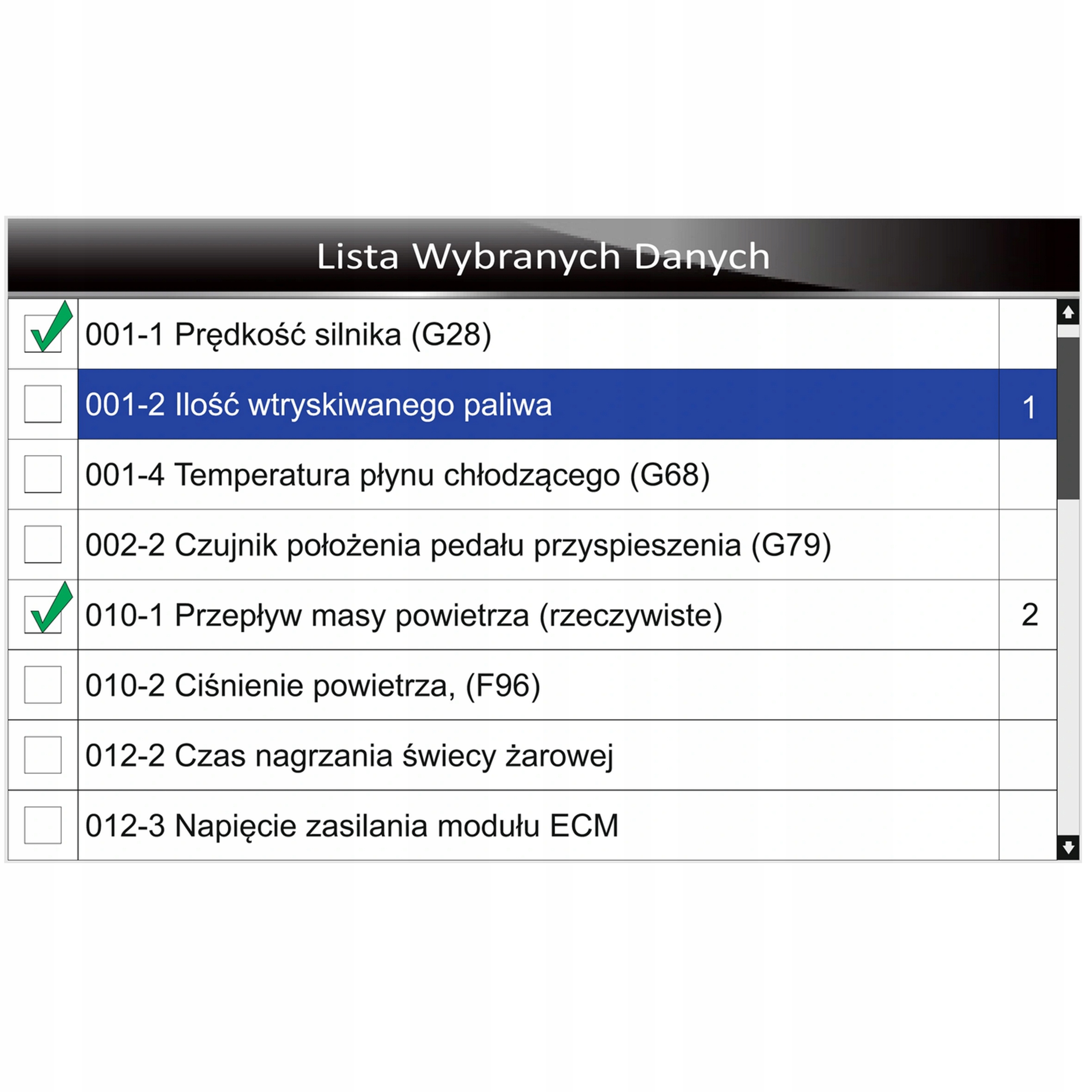 проверка исполнительных механизмов (запуск клапана рециркуляции отработавших газов, двигателя вентилятора, противоигл и т.д.)