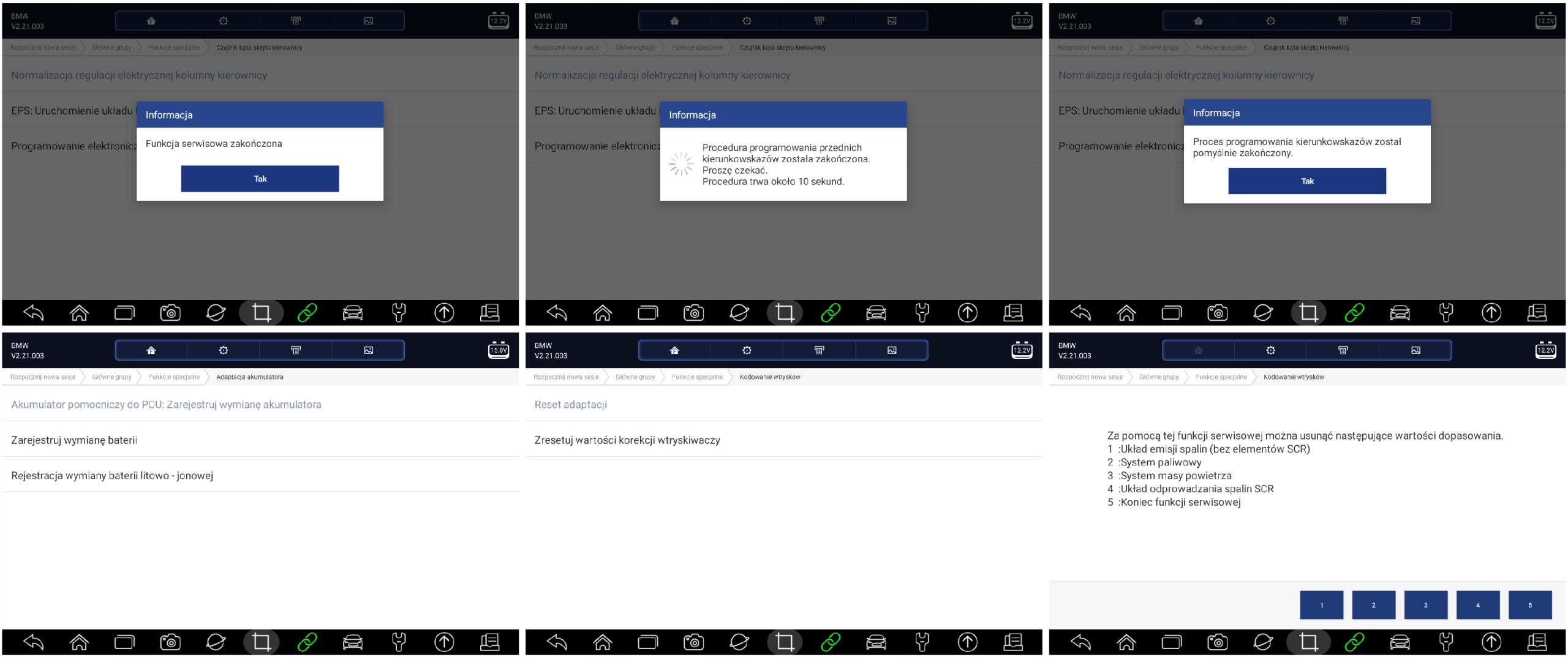 адаптация узлов (дроссельная заслонка, клапан EGR, компьютер двигателя и т.д.)