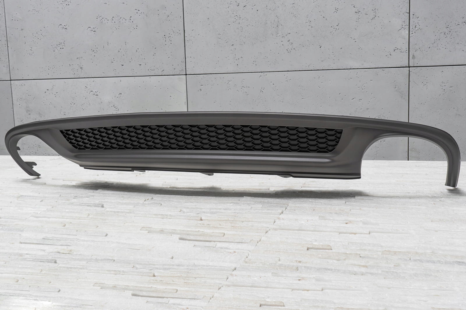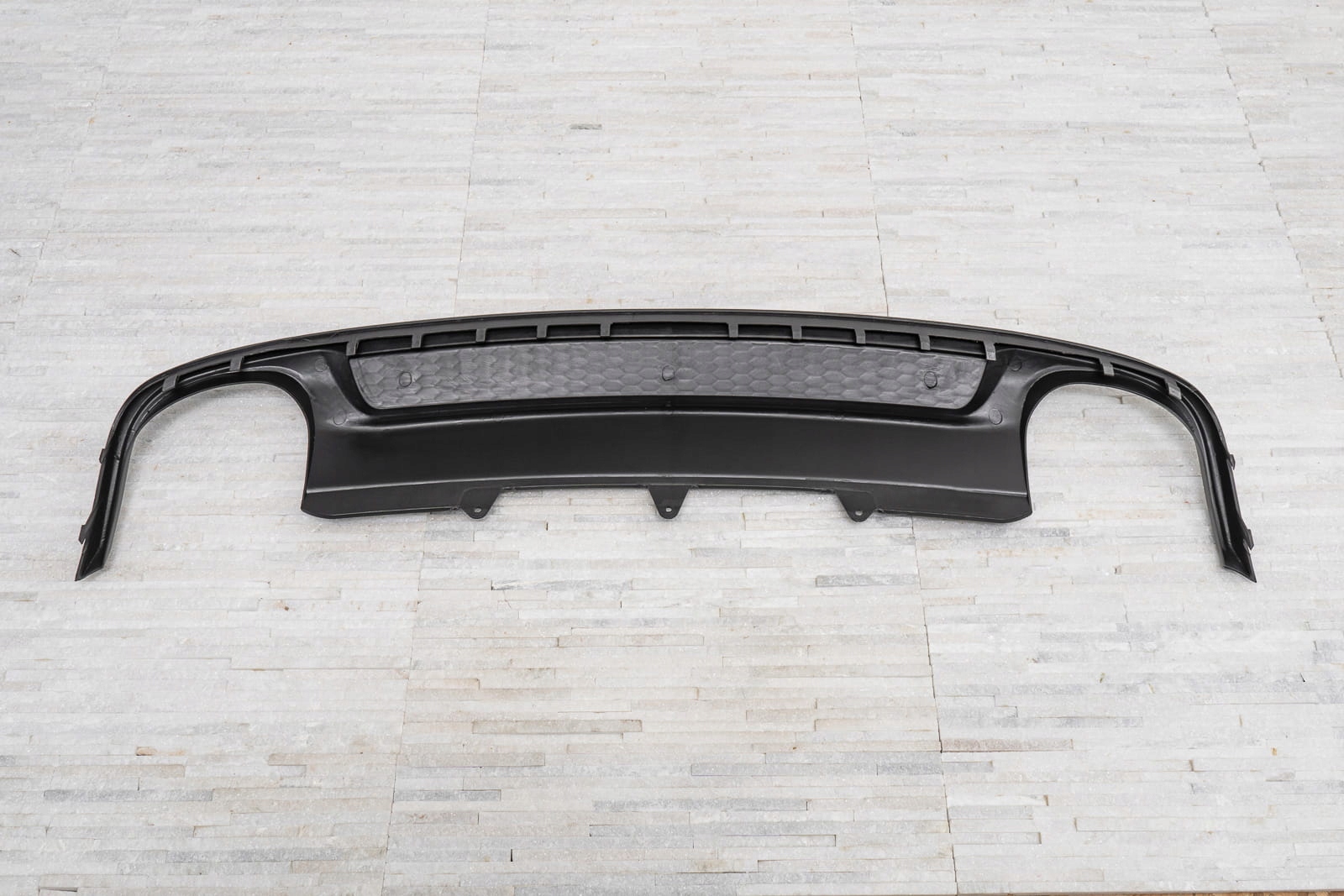 характерный двойной выхлоп позволяет добиться эффекта укладки Audi A4 на версии S4.    Диффузор разработан так, чтобы идеально сочетаться с другими элементами отделки, дополняя динамичный и спортивный характер вашего автомобиля. Помимо визуальных качеств, диффузор улучшает аэродинамику автомобиля, а также уменьшает шум воздуха, который проходит под автомобилем.   Изделие изготовлено из высококачественного автомобильного АБС-пластика антрацита и черного цвета. Диффузор дополнительно украшен сотовым усилением, напоминающим стиль спортивных автомобилей.   В комплект поставки входит монтажное оборудование.   диффузор-это запасная часть, совместимая с местом установки в заднем бампере автомобиля. Для установки элемента. необходимо разобрать юбку бампера, затем заменить ее стилизованным диффузором.