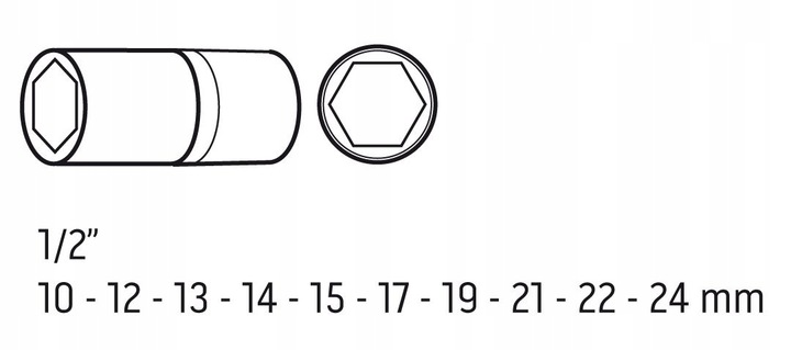✔️Гнездо в комплекте: 1/2 дюйма, длинный шестигранник: 10, 12, 13 , 14 , 16, 17, 19, 21, 22, 24 мм