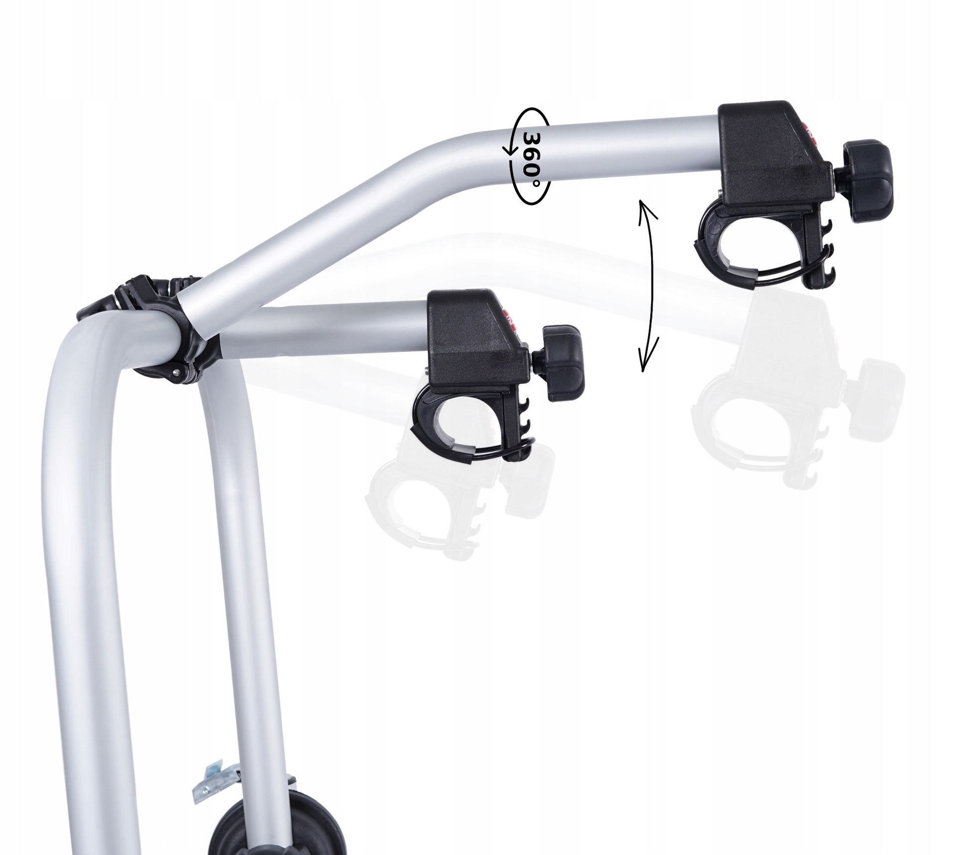 для крепления велосипеда используются удобные в эксплуатации алюминиевые рычаги с вертикальной и горизонтальной регулировкой и возможностью поворота на 360°. На конце каждого рычага имеется ручка с ручкой, позволяющая крепить рамы велосипедов диаметром 3-5 см и овальные с максимальной окружностью 16 см.п>