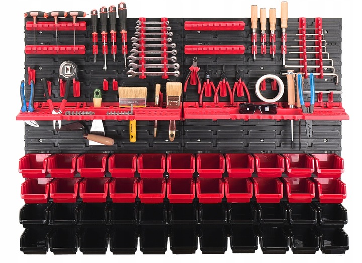 ⭐ Доска оснащена качественными полосками, кюветами/контейнерами, ручками и крючками. Это позволяет наглядно хранить различные предметы мастерского инвентаря: отвертки, напильники, стамески и другие инструменты с круглой ручкой.