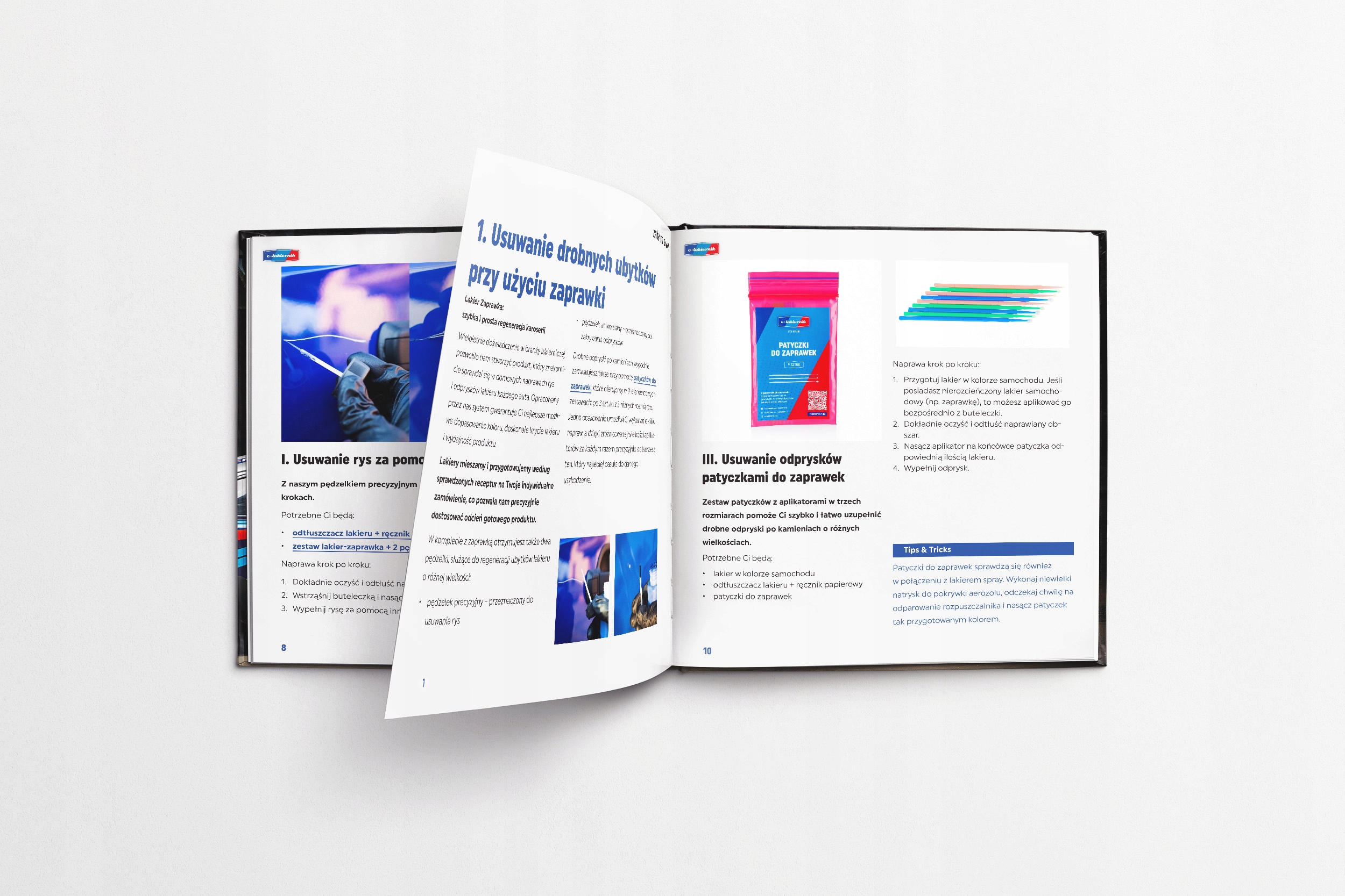 1. поврежденную поверхность необходимо очистить,выровнять отремонтированную поверхность сухой бумагой с градацией 400 и удалить с нее остатки старого лака. Субстрат должен быть чистым, сухим и без жира. Царапины и неровности необходимо заполнить шпатлевкой, а затем сгладить "влажной" бумагой с градацией 800.