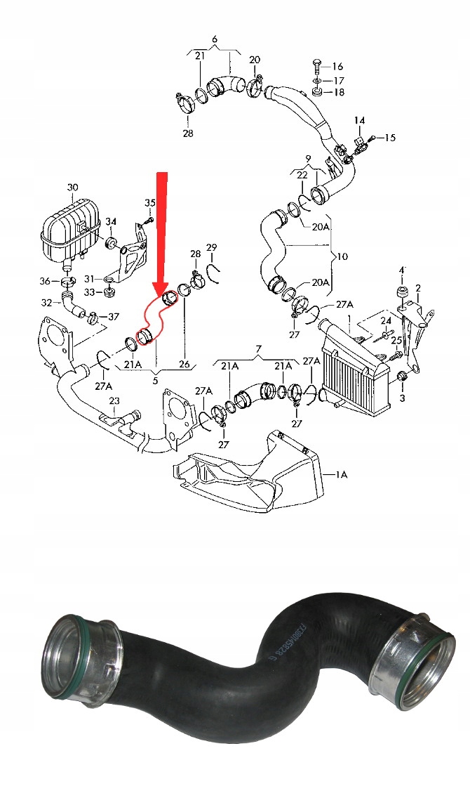 новый шланг, шланг интеркулера, замена оригинала с каталожным обозначением:
