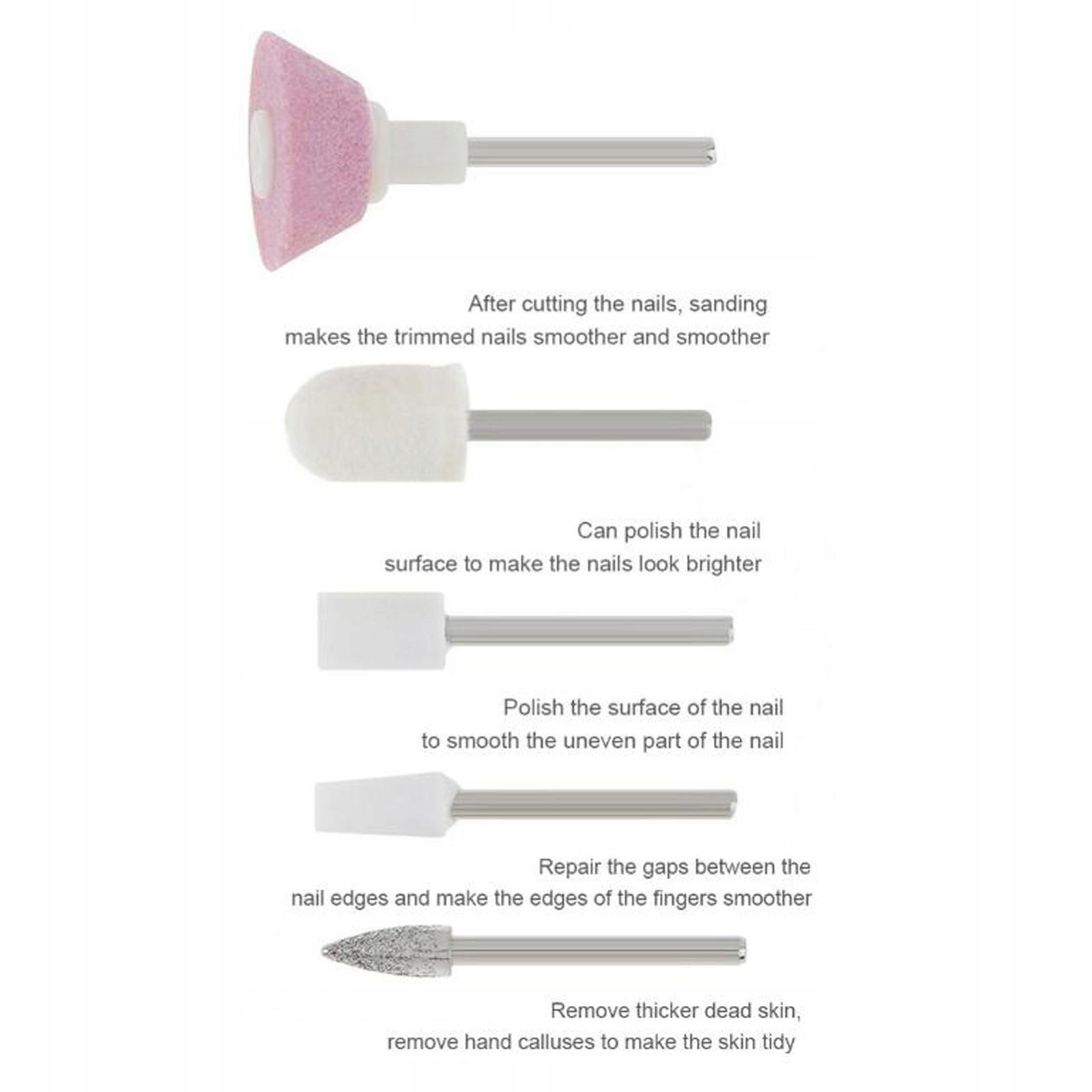 Многофункциональный: с 5 различными битами, подходит для шлифования, резьбы, полировки, удаления кутикулы и т. д.