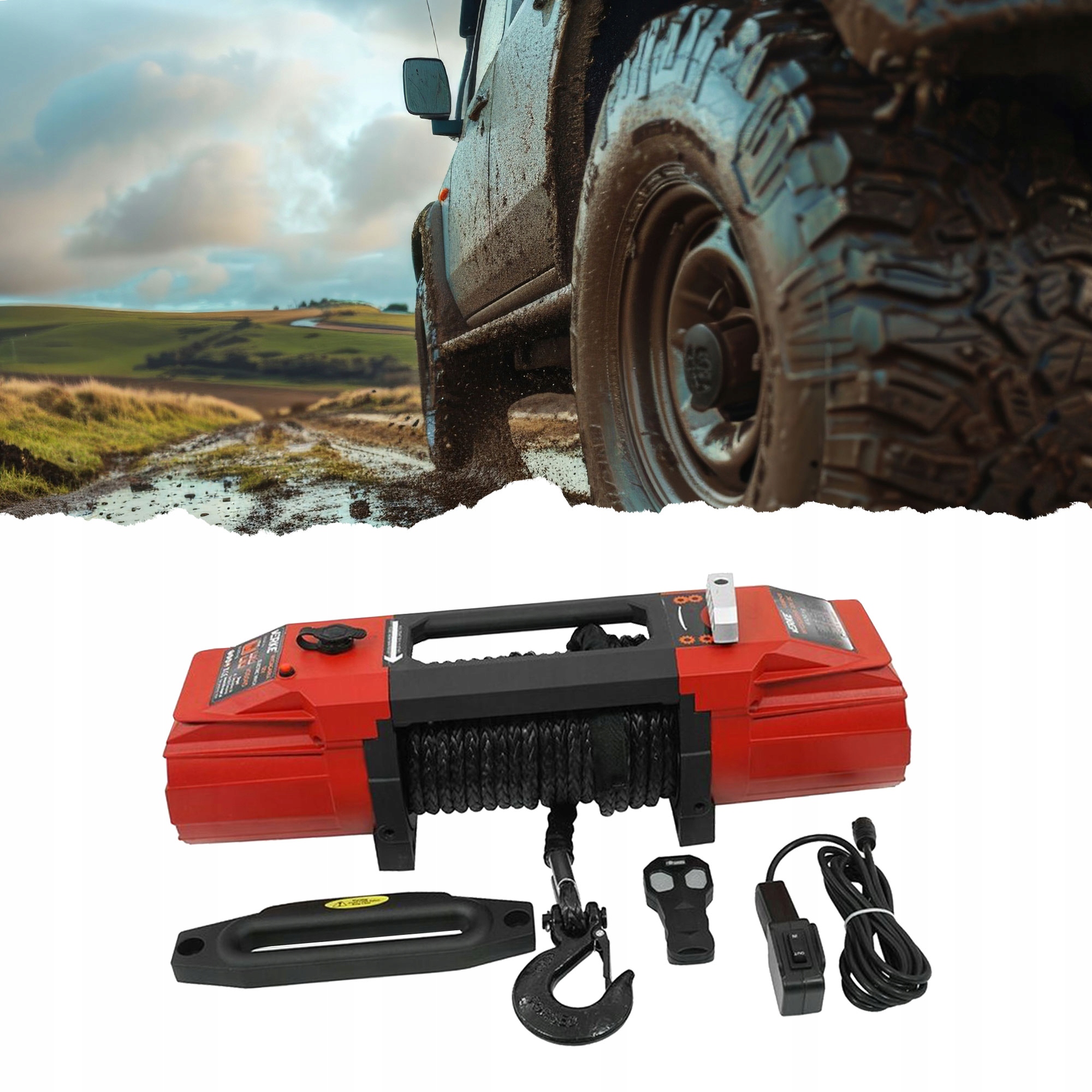Прочный синтетический трос: Лебедка оснащена прочным синтетическим тросом, который гарантирует надежность и исключительную долговечность даже в самых тяжелых условиях.