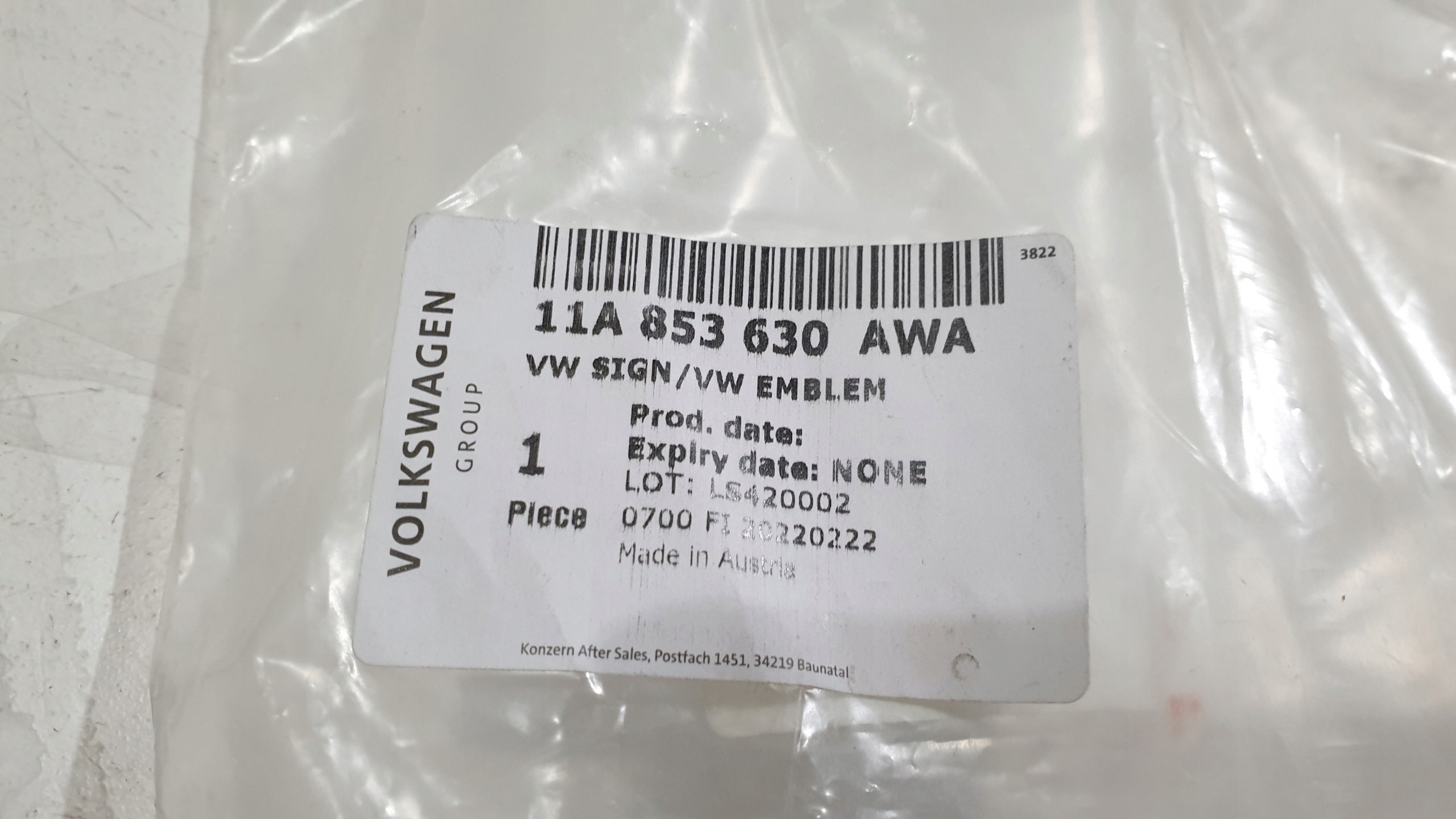 | Номер детали | 11A853630 |