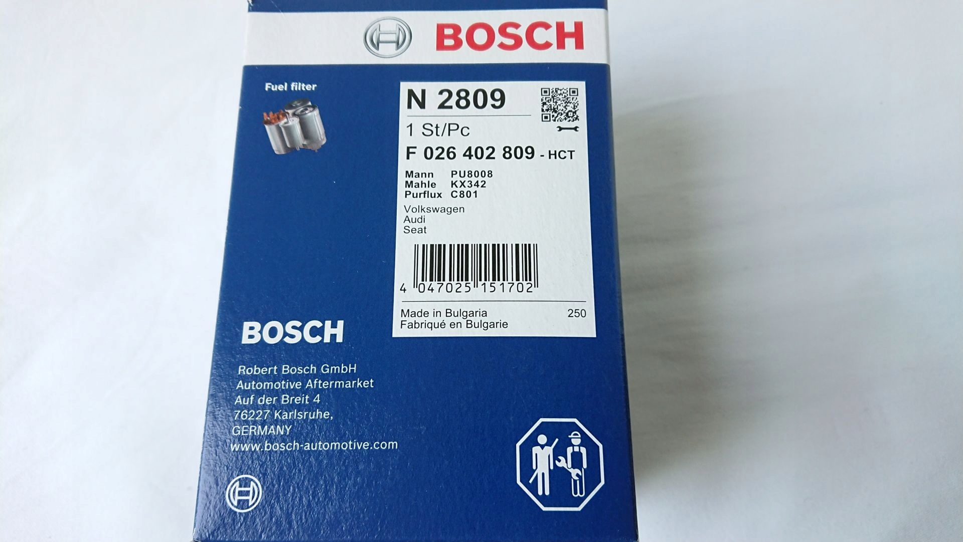 топливный фильтрпроизводитель: BOSCHномер детали: F 026 402 809 / N 2809