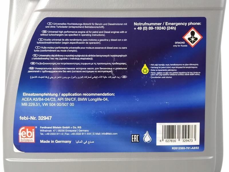 элемент: масляный фильтр и синтетическое масло FEBI