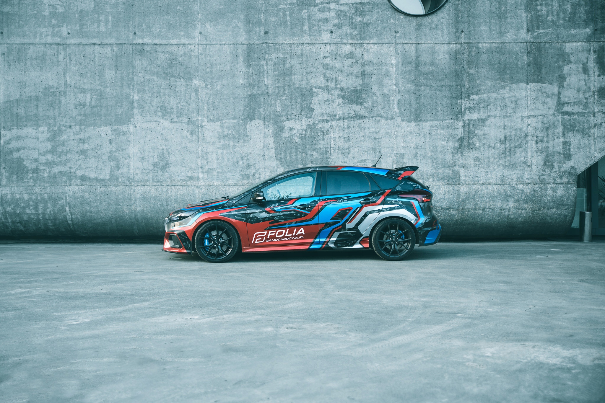 одна сторона автомобиля матовая, а другая половина покрыта светоотражающим ламинатом.
