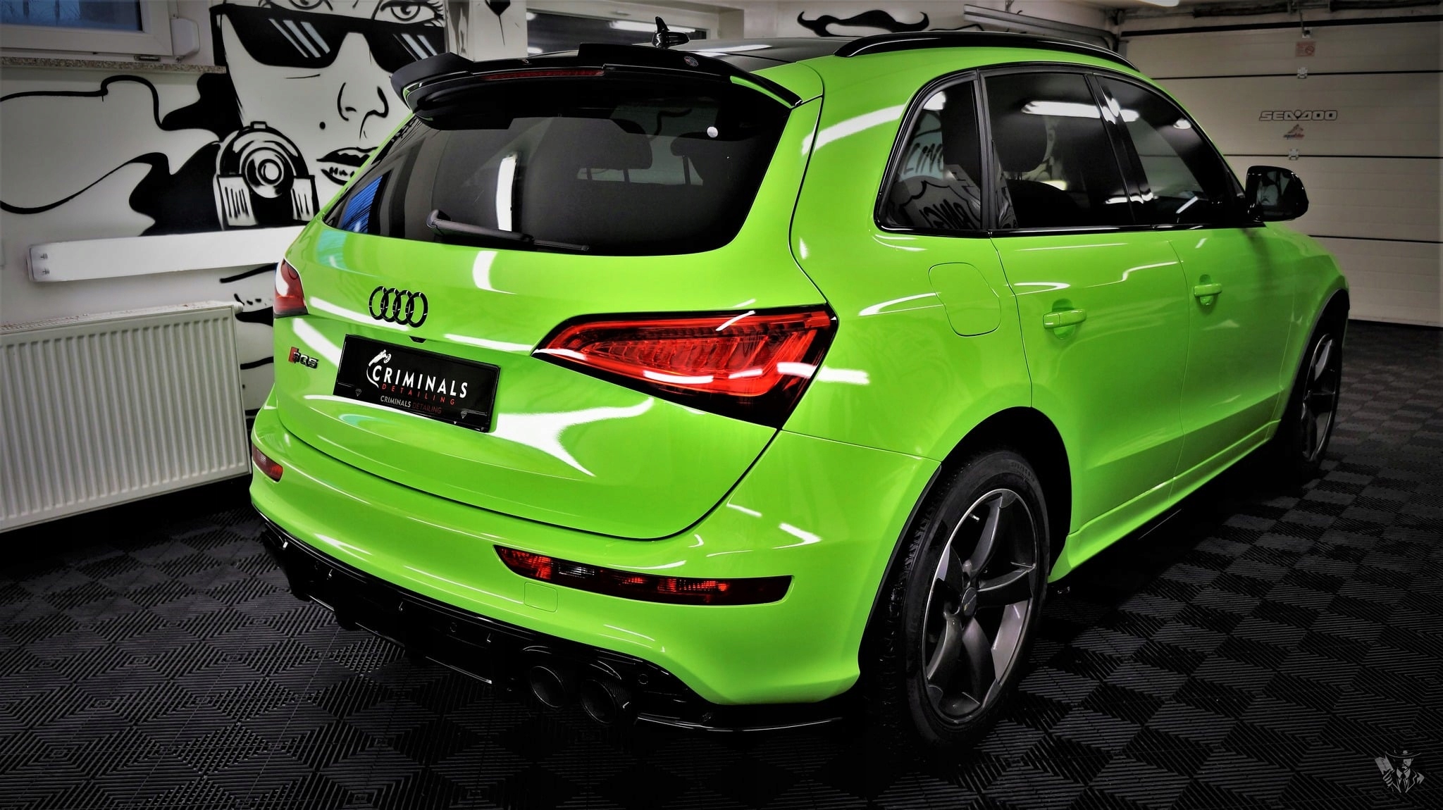 одна сторона автомобиля матовая, а другая половина покрыта светоотражающим ламинатом.