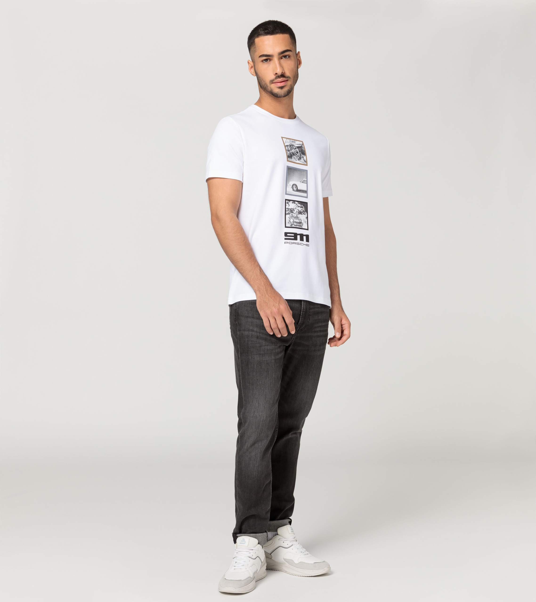 Принт с изображением 911 спереди и однотонный принт с логотипом 911 60Y на спине привлекают внимание к этой футболке.