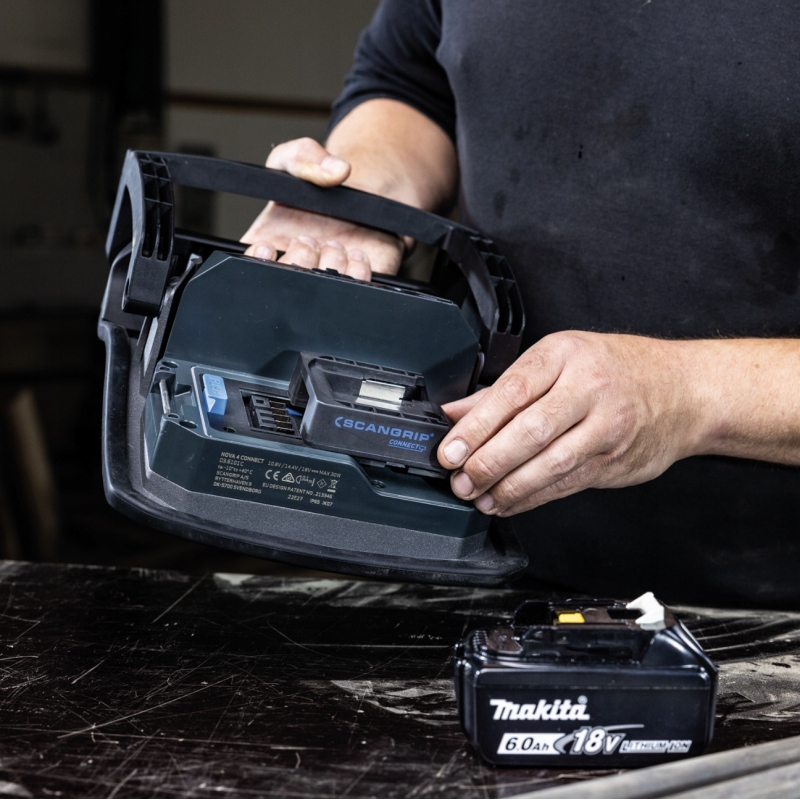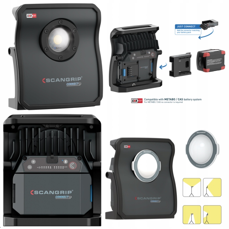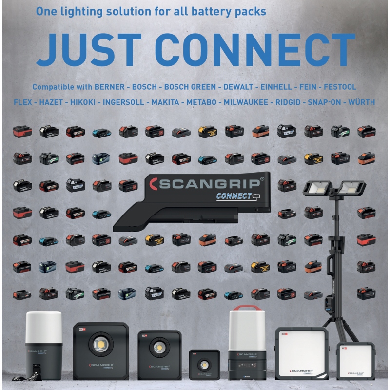 совместим с системой аккумуляторов METABO/CAS 12V 4.0 Ah - 18v 5.2 Ah и со всеми другими батареями 18V ведущих брендов: Berner, Bosch, Bosch zielony, DeWalt, Einhell, Fein, Festool, Flex, Hazet, Hikoki, Ingersoll, Makita, Milwaukee, Ridgid, Snap-On, Würth, Panasonic с помощью SCANGRIP CONNECTOR.