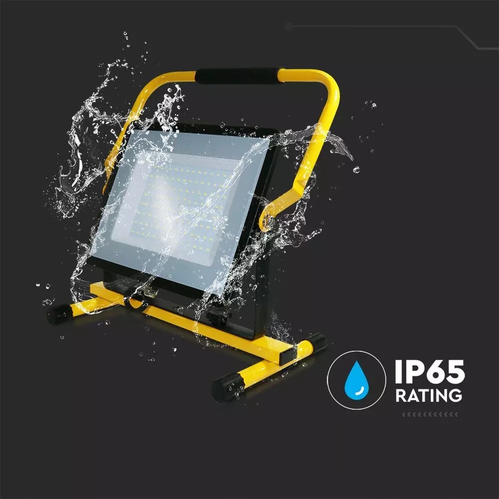 портативный прожектор высокой мощности100 Вт . холодный белый свет с яркостью до 8200lm обеспечиваютSMD светодиоды от Samsung . Все это заключено в алюминиевый корпус с высоким классом герметичности IP65, благодаря чему продукт не подвергается неблагоприятному воздействию влаги и пыли.