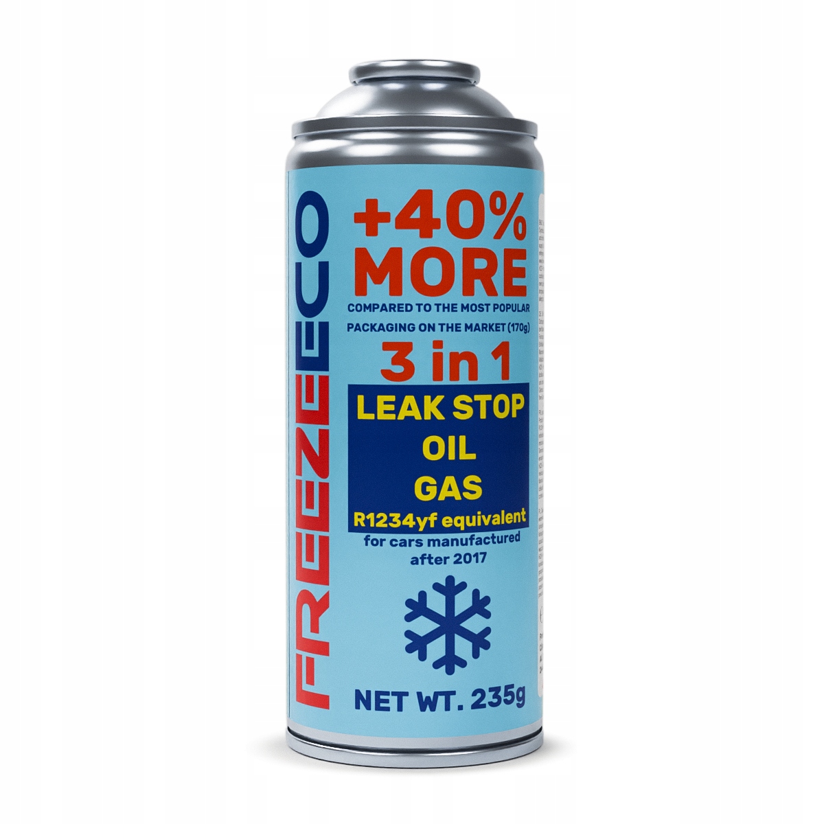 ⭐ R1234yf ГАЗ + МАСЛО + ГЕРМЕТИК 3 в 1 повышенной емкости - ТИП А (11,5 мм) - 235 г нетто - 400 мл (эквивалент более 625 г R134A) - используется для автомобилей, выпущенных после 2016 года⭐