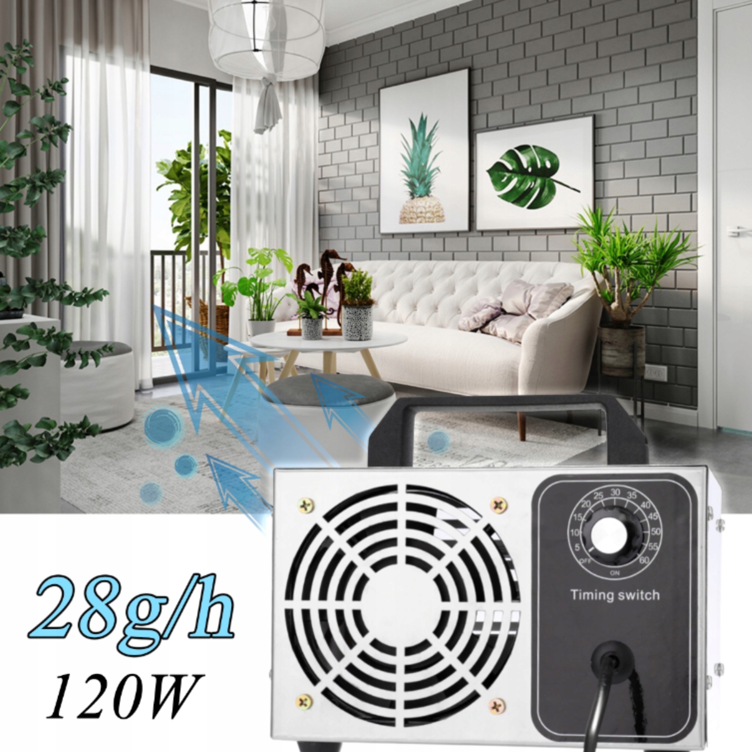 Просто подключите озонатор к источнику питания, установите время и дайте ему поработать - прибор чрезвычайно прост в использовании. Благодаря высокой эффективности 28 000 мг/ч процесс озонирования происходит быстро и эффективно даже в больших помещениях.