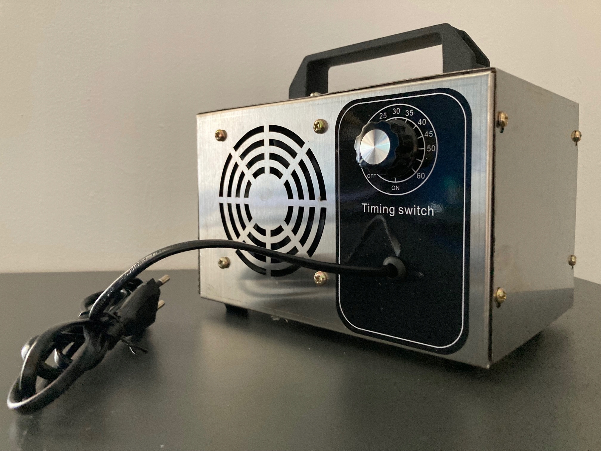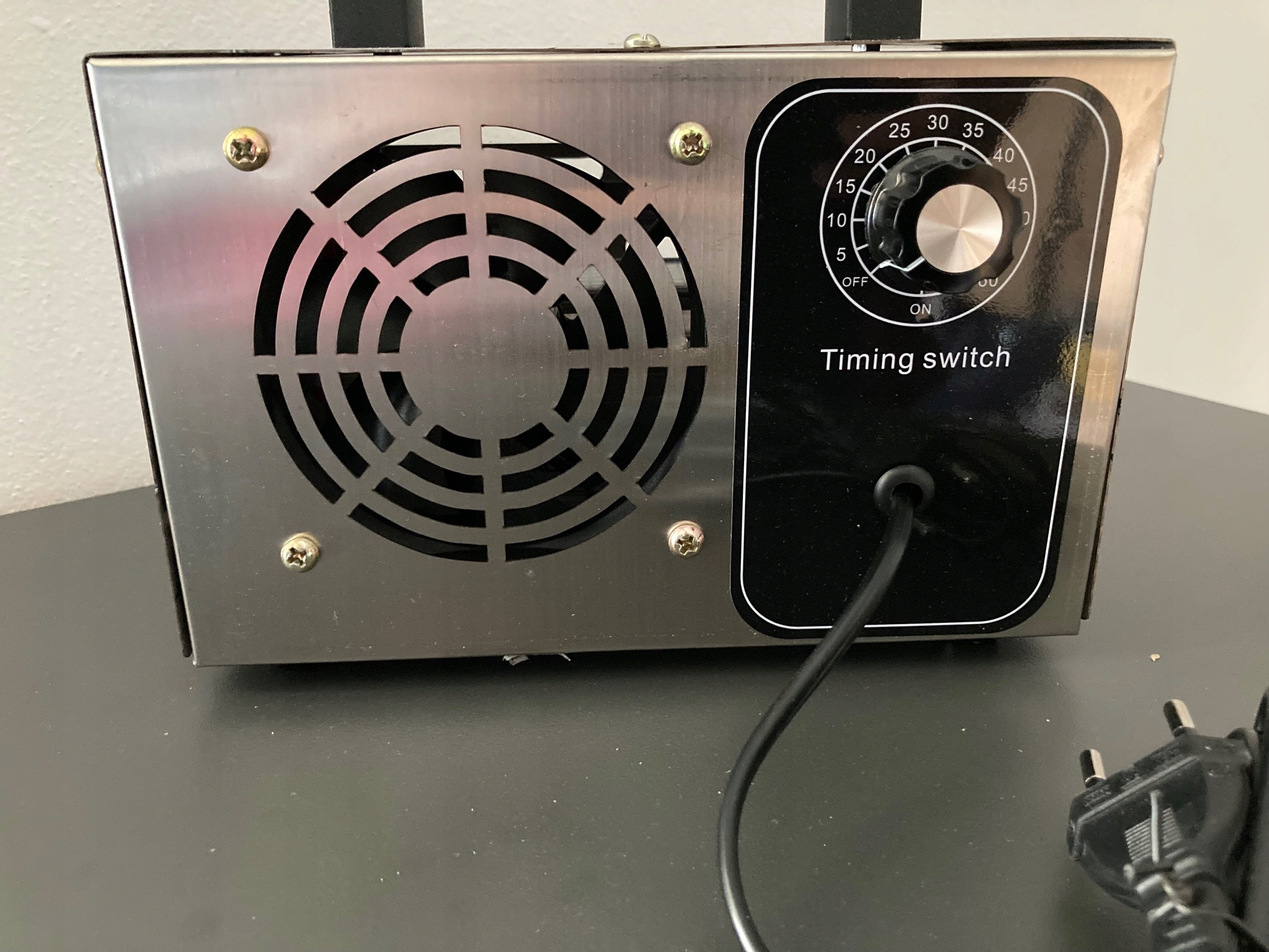 озонатор выделяет Озон (O3). Точные рабочие параметры устройства зависят от его эффективности – чем выше, тем быстрее может быть достигнута высокая концентрация озона в помещении. Озонатор очень прост в эксплуатации – просто подключите его к току и установите на выбранное время работы .п>