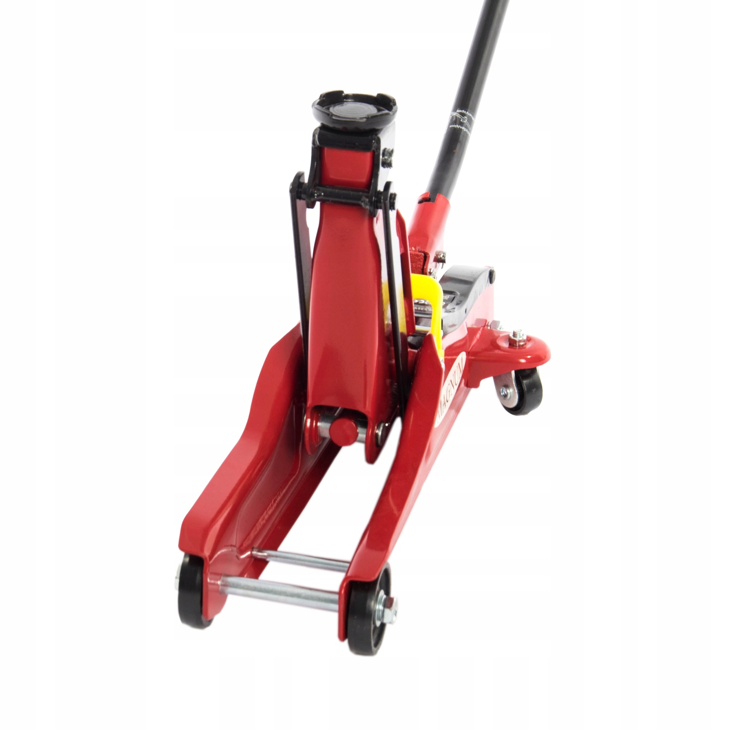 Массивный гидравлический подъемник типа «лягушка» от MAGNUM. Прочная конструкция, оснащенная однопоршневым гидравлическим насосом, обеспечивает безопасный подъем. Дополнительным преимуществом подъемника является его низкий профиль, что позволяет поднимать автомобили с заниженной подвеской.