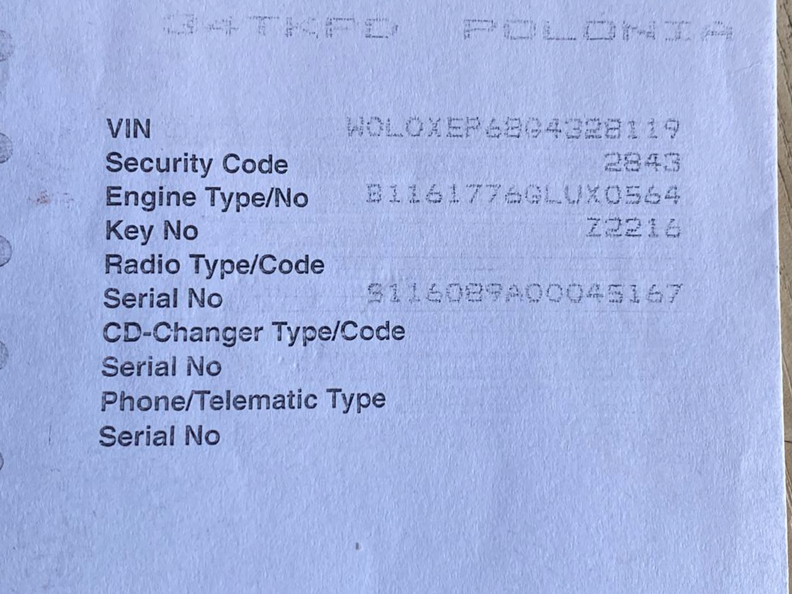 | Производитель деталей | Opel OE |