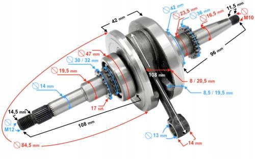 - общая длина длинного рычага вала: 108 мм,