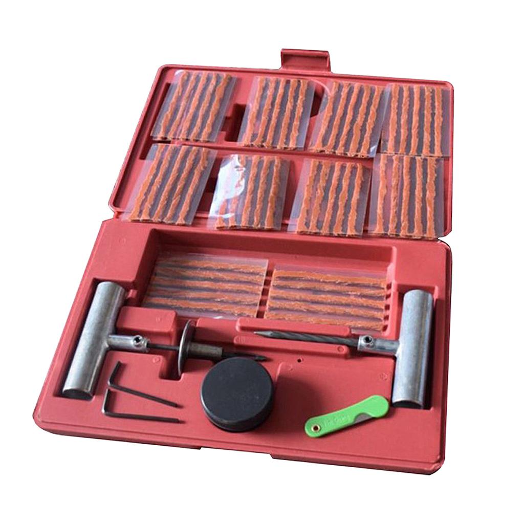 : Профессиональный комплект для ремонта бескамерных шин, состоящий из 57 предметов, необходим каждому владельцу транспортного средства, он спасает жизнь. Быстрый ремонт и ремонт проколов, незаменимый инструмент для всех владельцев транспортных средств. Включает 1 заглушку с Т-образной рукояткой, 1 расширитель с Т-образной рукояткой. , 2 гаечных ключа H3 мм, 1 кусок вулканизирующей смазки для уплотнения струн (СМ.