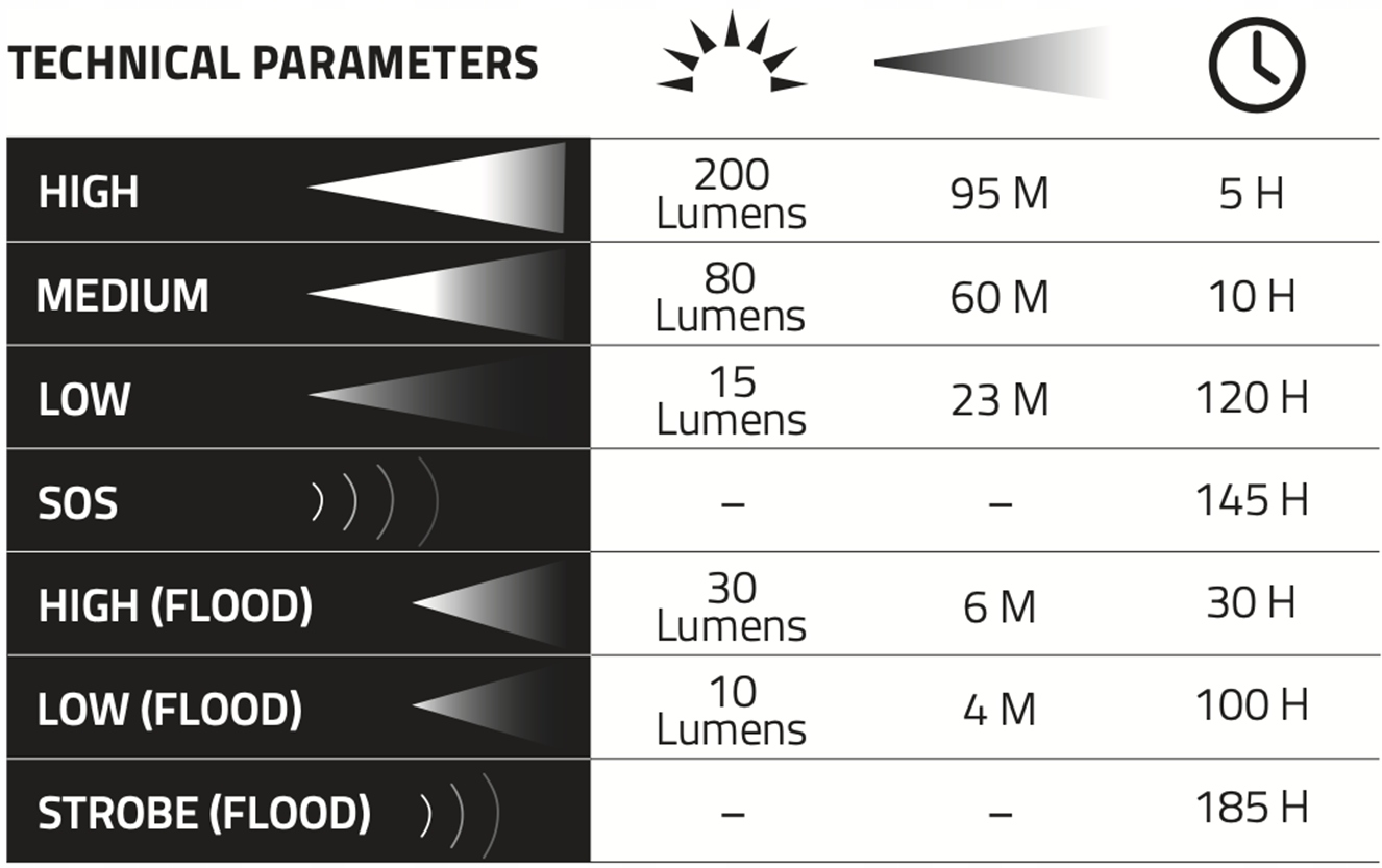 UNILITE PS-HDL2 - это фара с питанием от батарей 3 x AAA с основным диодом CREE® LED мощностью 200 люмен и 2 дополнительными светодиодами с функцией фары мощностью 30 люмен. PS-HDL2 можно использовать как с головным ремнем, так и с самоклеящимся креплением для шлема (быстрая разборка). Независимо от способа крепления, фонарик обеспечивает диапазон регулировки 45°. Устройство является водонепроницаемым и пыленепроницаемым по стандартам IPX6.п>