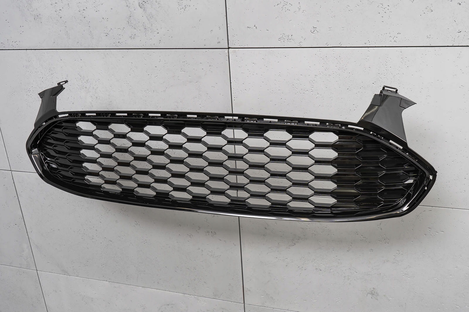 выделенный гриль разработан в стиле, характерном для автомобилей сегмента ST. решетка гриля с характерным сотовым рисунком, обязательно напоминает внушающие страх, мощные спортивные автомобили высшего класса. Элемент впечатляет своим спортивным характером, а блеск черных элементов придает ему элегантность, что делает его идеальным для впечатляющего дизайна Ford MONDEO.п>