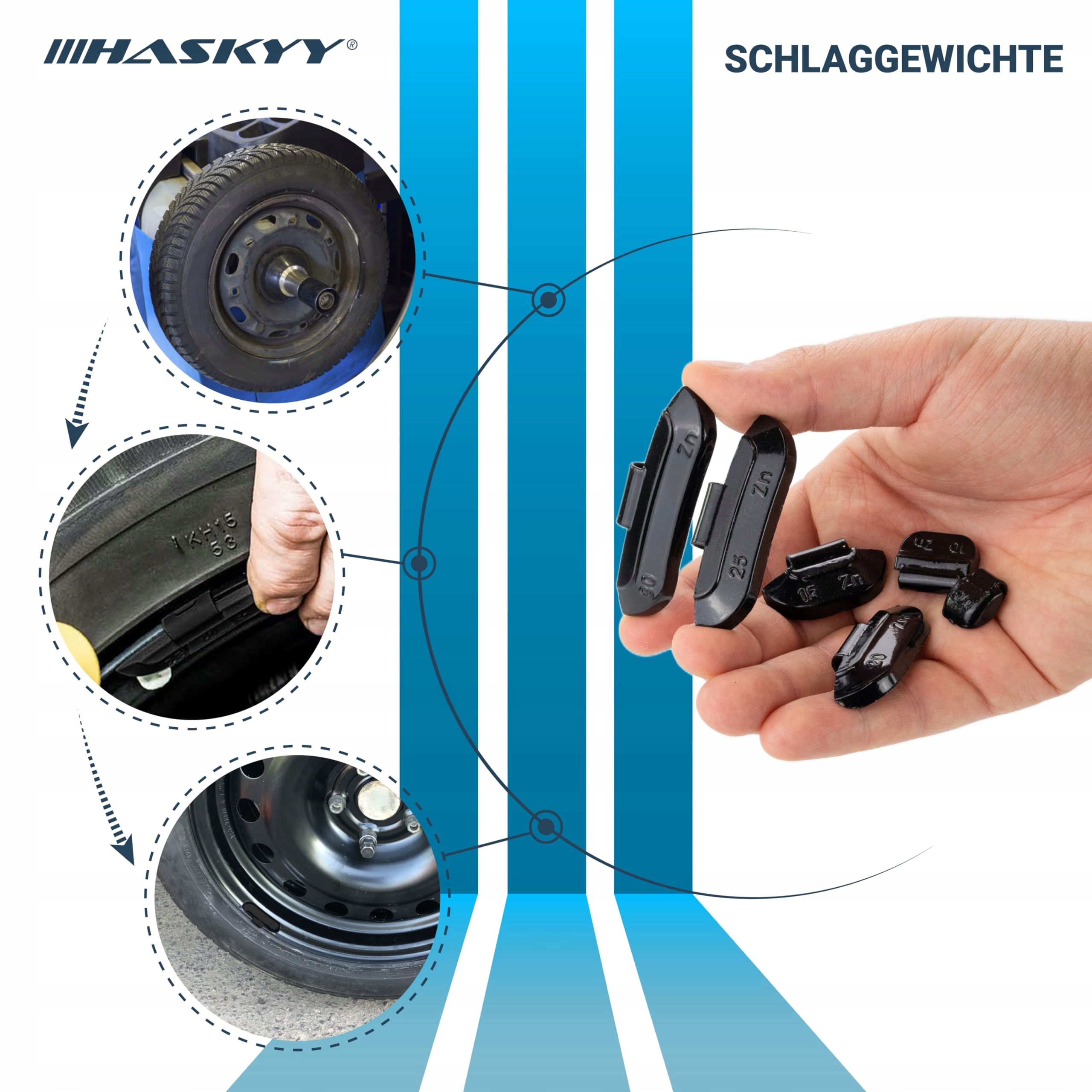- Эффективная балансировка: использование комплектов грузов для стальных ободов HASKYY из 225 деталей позволяет точно балансировать шины, чтобы минимизировать нежелательные вибрации и обеспечить равномерный износ шин.