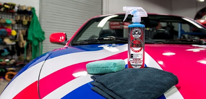один" выстрел " ACTIVATE SHINE на микрофибре или аппликаторе из микрофибры. Важно не наносить слишком много продукта на микрофибру.Ли>