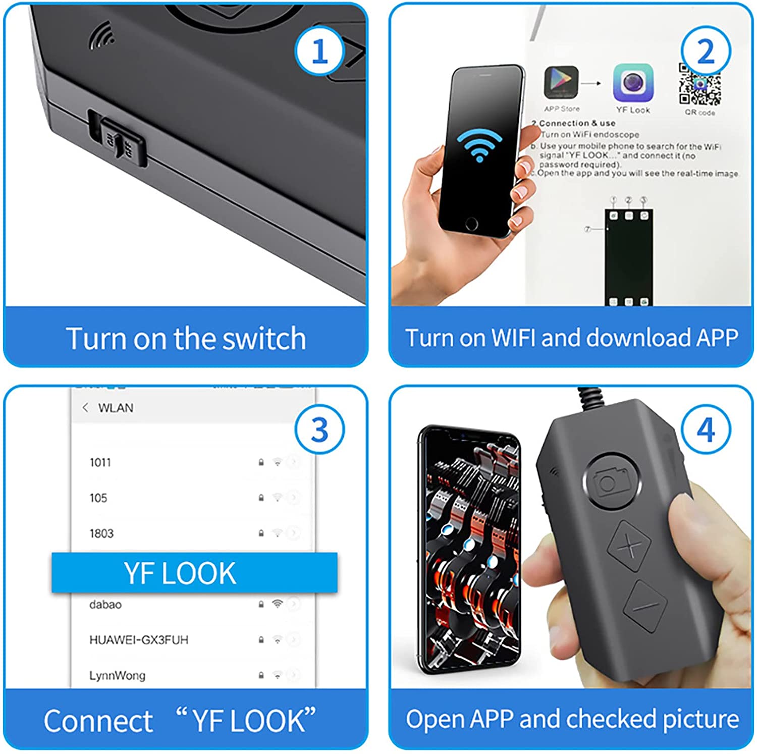 двойной проветриватель с двумя объективами этот бороскоп МО противопоставляют передние и боковые камеры для наблюдения за ситуацией под разными ктами. HD инспекционная камера Borescope обеспечивает высокую четкость HD с близкого расстояния для регулировки снимка atw в режиме ожидания и повышения эффективности работы. Водонепроницаемый IP67 и 6 темных светодиодов Дикий 6 регулируемых светодиодов и тонкий водонепроницаемый зонд этот эндоскоп подходит для различных типов родословных, таких как Сабо оветлон или темные области влажные или влажные области и т. д. Созданный через Wi-Fi atwy в uyc Загрузите и установите совместимое приложение на свое устройство. Вам не нужны дополнительные адаптеры или кабели, просто соедините наш эндоскоп со смартфоном через WiFi. Nastpне запустите приложение, чтобы начать проверку. Беспроводной эндоскоп эта эндоскопическая камера оснащена полужестким кабелем, который МО от входного отверстия до темных и темных мест для неразрушающего контроля трубопроводов механической обратной связи, технического обслуживания автомобиля, отложений в цилиндрах двигателей и другой обратной связи.п>