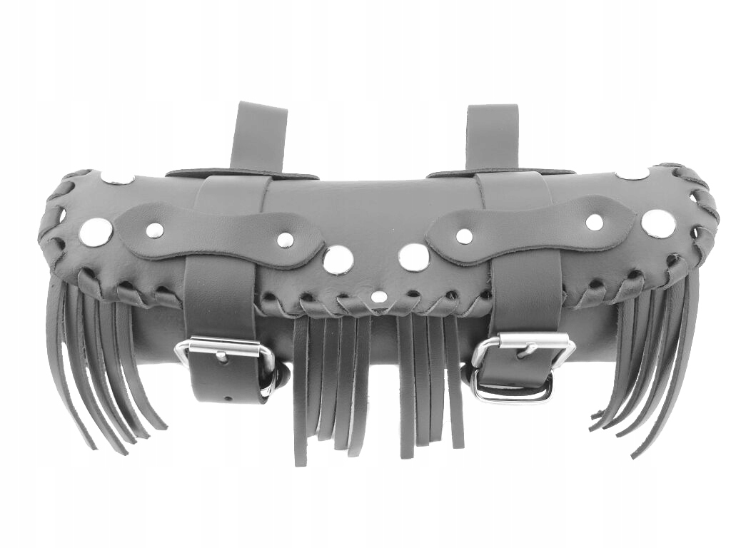 украшен хромированными заклепками и бахромой.п>
