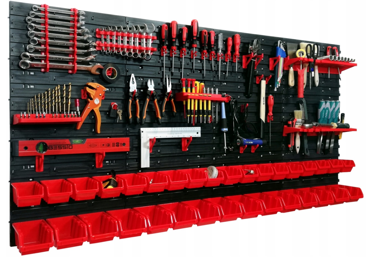 Доска для инструментов , ручки и контейнеры туалетные лотки изготовлены из пластика, они прочные и отлично работают как в профессиональной мастерской, так и в домашнем гараже .