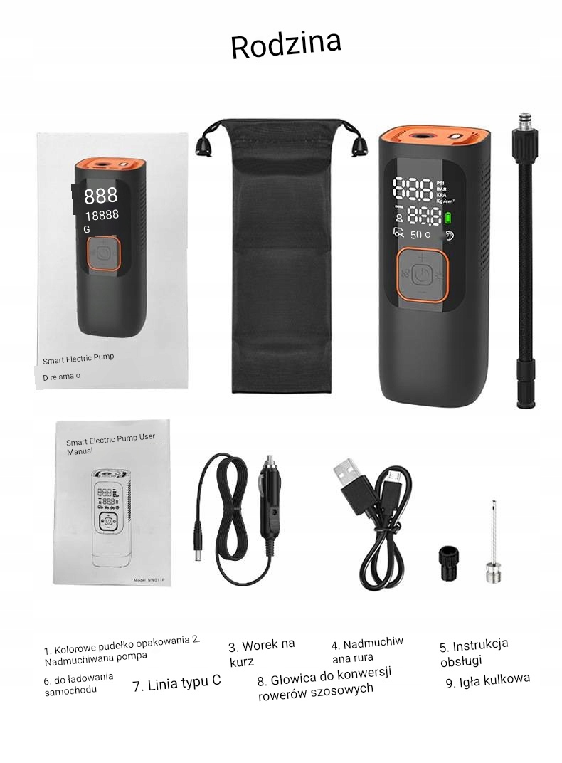 Длина шнура питания: Беспроводной надувной насос