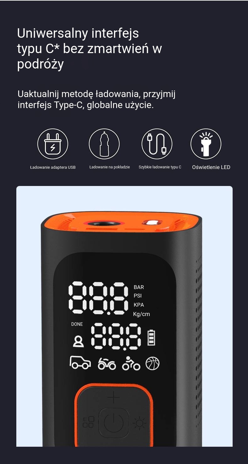 Дополнительные функции: освещение, манометр в шинах