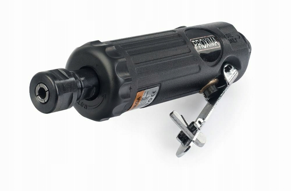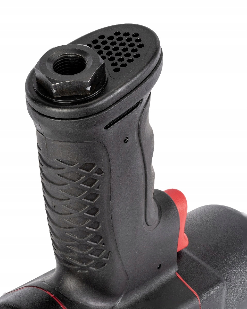 прочный корпус из легкого алюминия очень прочный и помогает уменьшить вибрацию. Эргономичность работы дополнительно обеспечивается низким весом 0,6 кг. Инструмент питается пневматически сжатым воздухом с давлением 6,3 бар. Для безопасности используется спусковой крючок в виде рычага с фиксатором, который является защитным элементом от случайного срабатывания. Выход воздуха расположен в задней части корпуса, предотвращая попадание пыли из заготовки воздушным потоком.