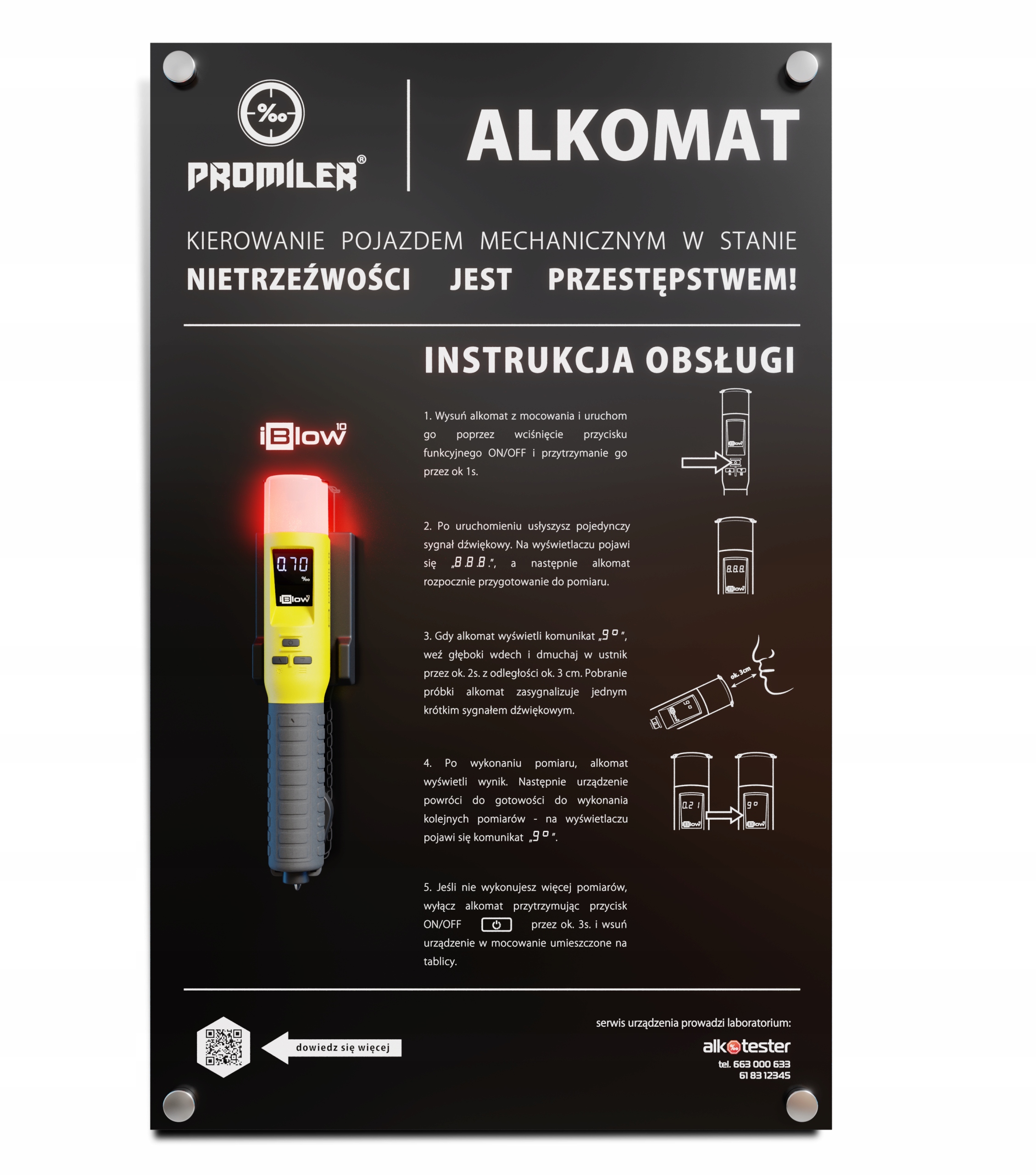для измерения был использован скрининговый алкотестер, уже используемый польскими УНИФОРМЕННЫМИ службами - модель PROMILER iBlow.п>
